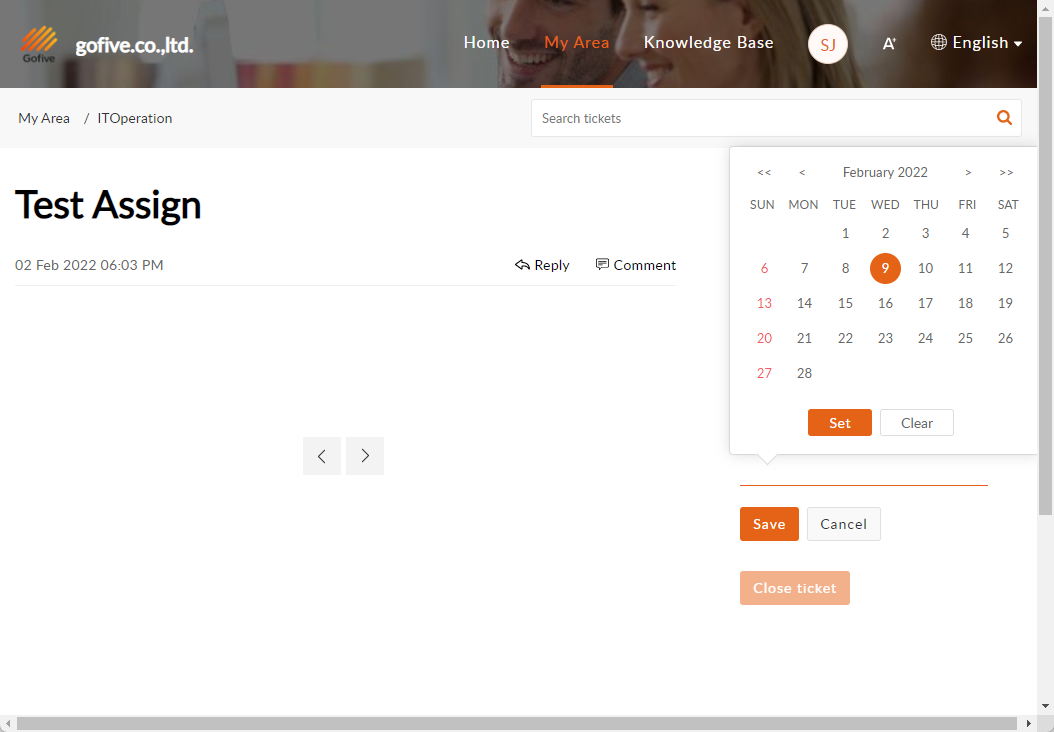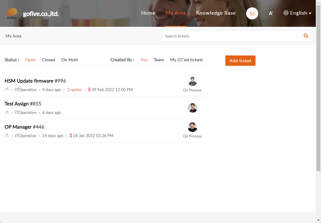 You can check the status, track it, or close a ticket yourself.